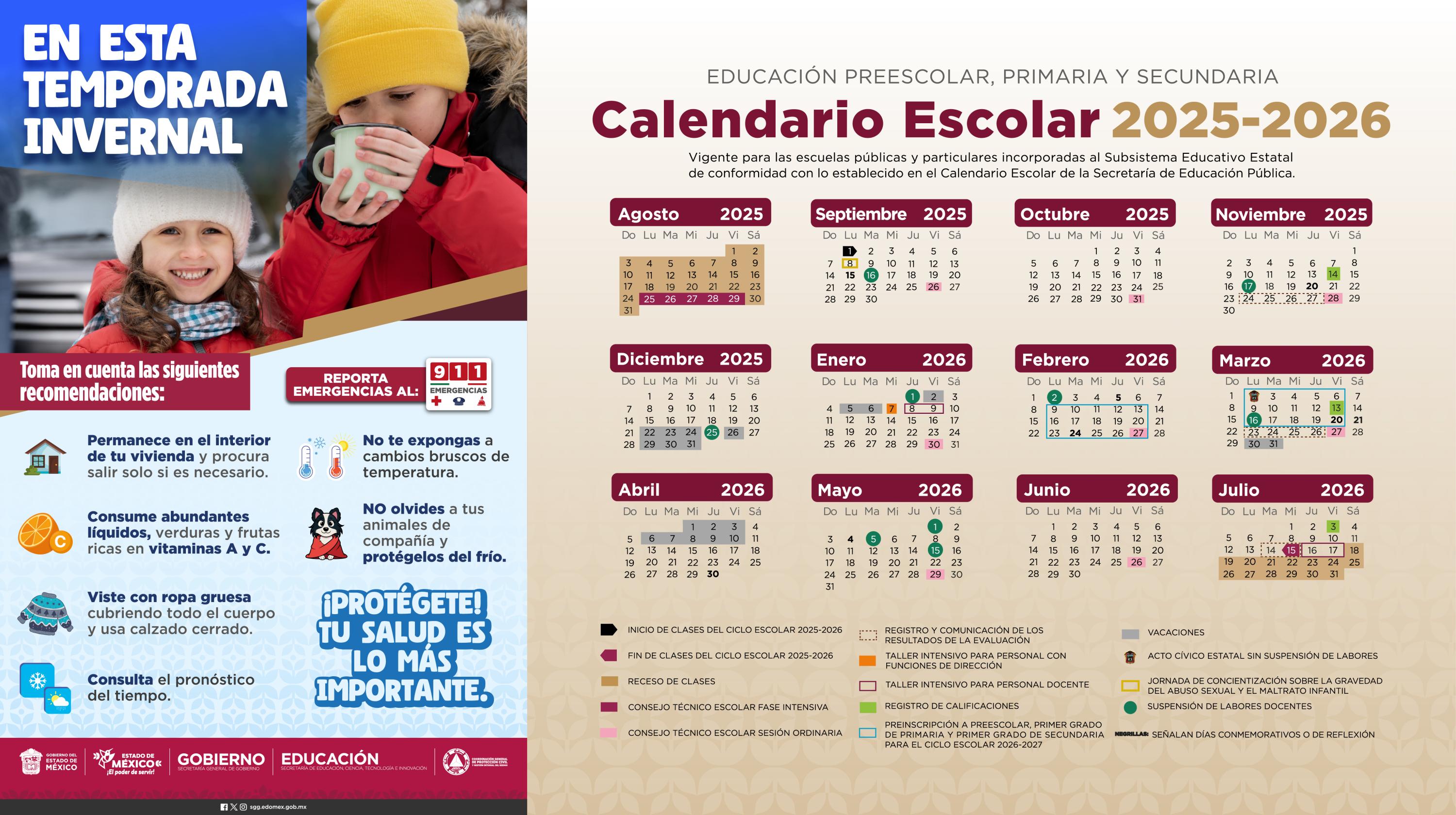 Calendario Escolar vigente para instituciones educativas pertenecientes al Subsistema Estatal.
